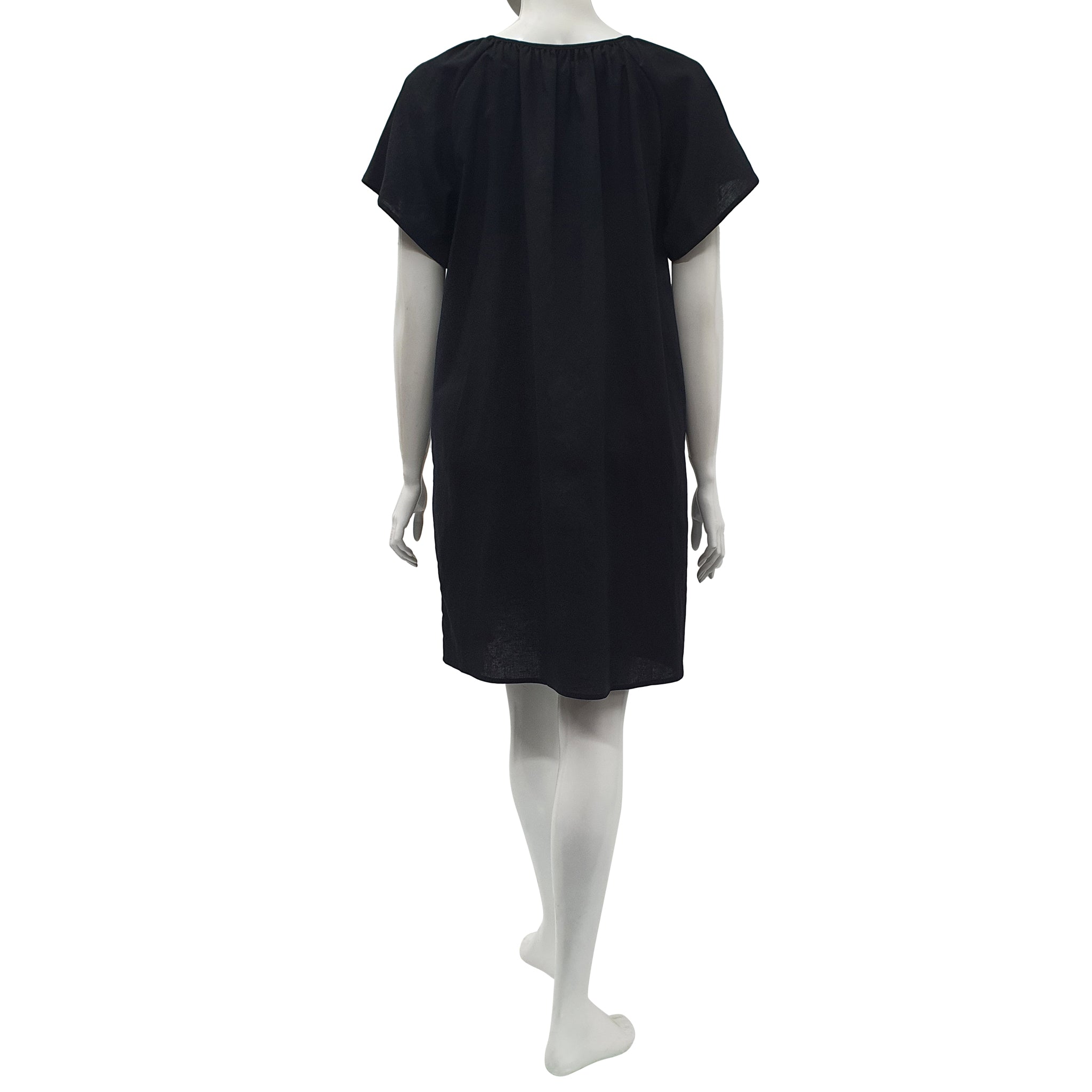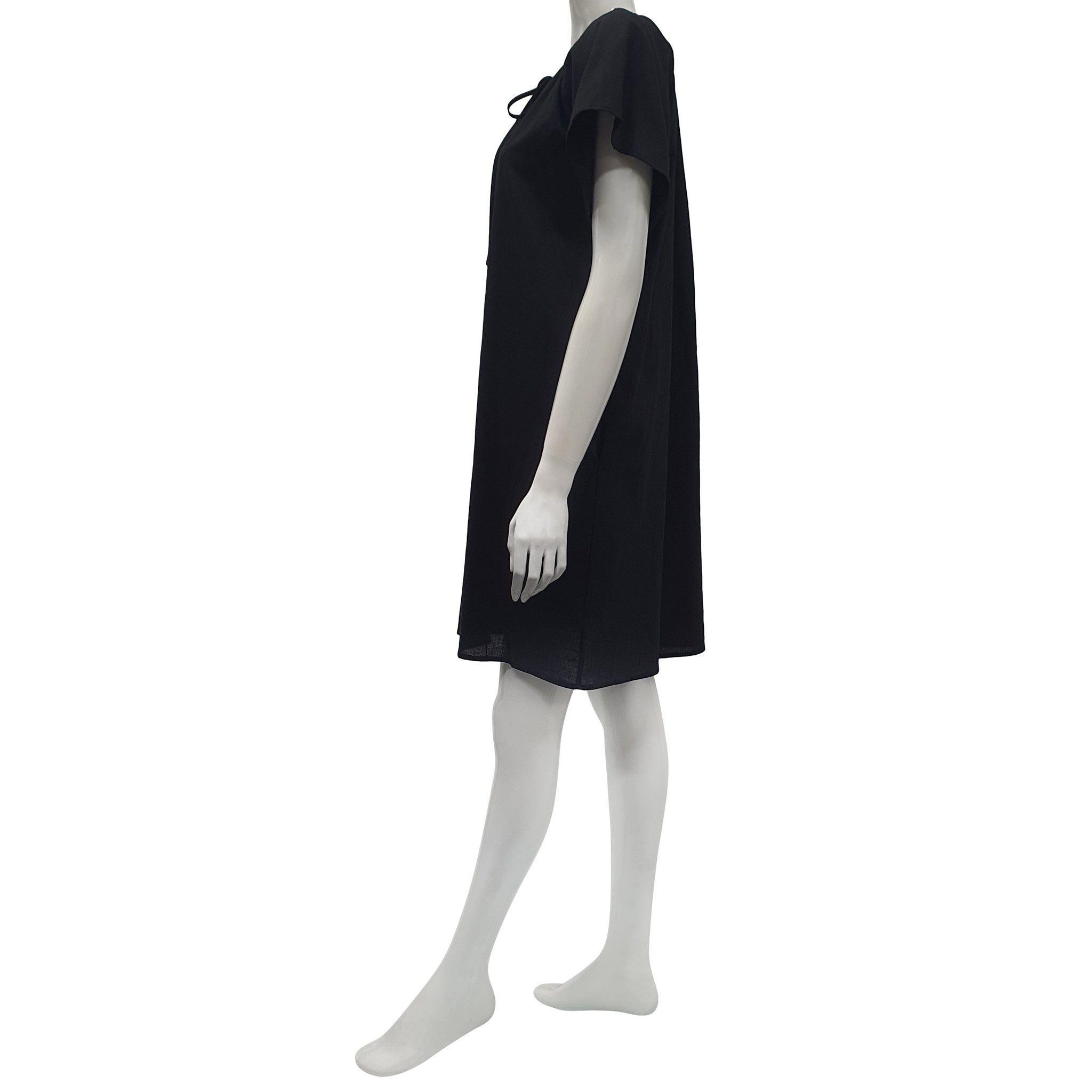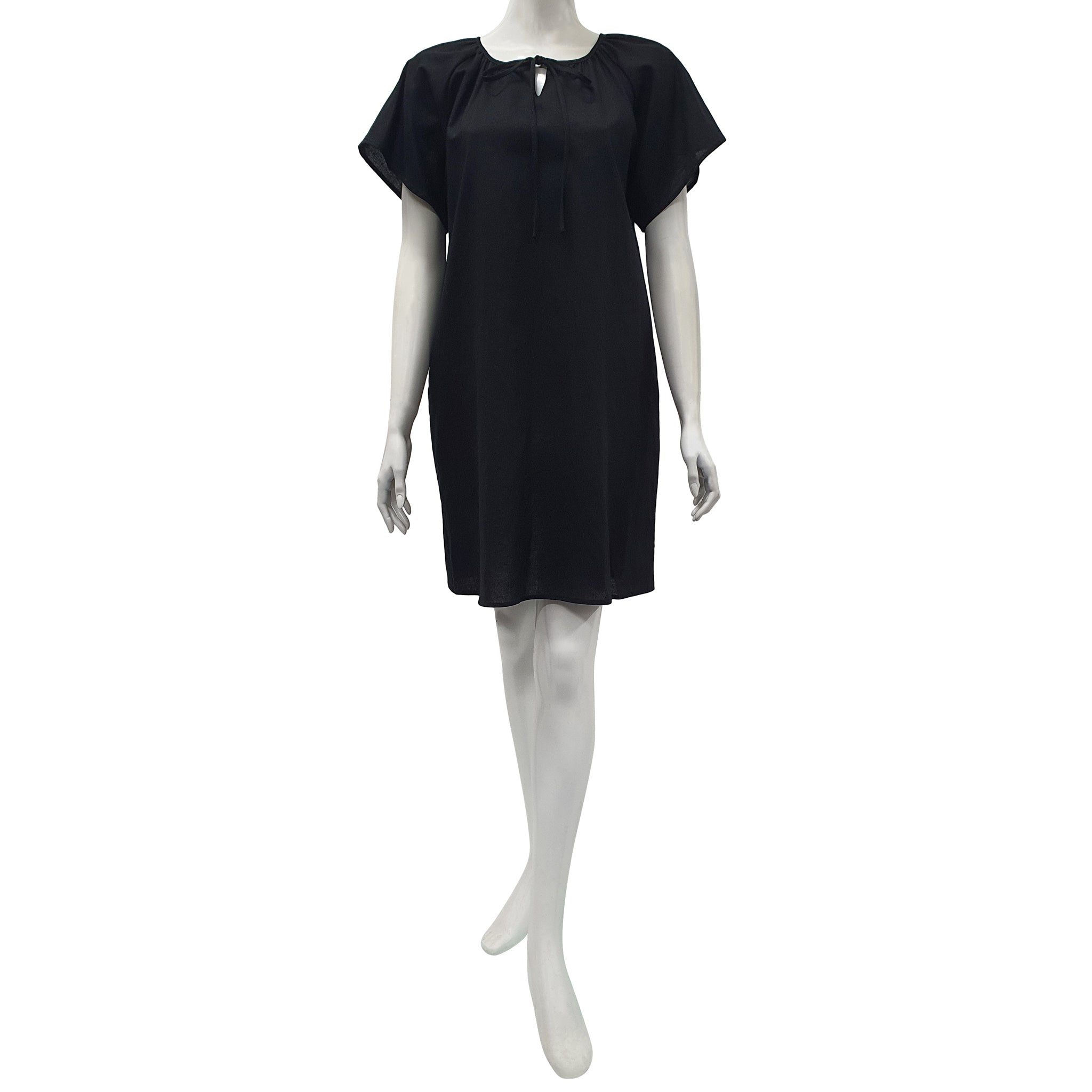 This effortless shift dress features a relaxed silhouette, flutter sleeves and a charming keyhole neckline accented by a tie detail. Perfect for warm days, it offers both comfort and casual elegance.