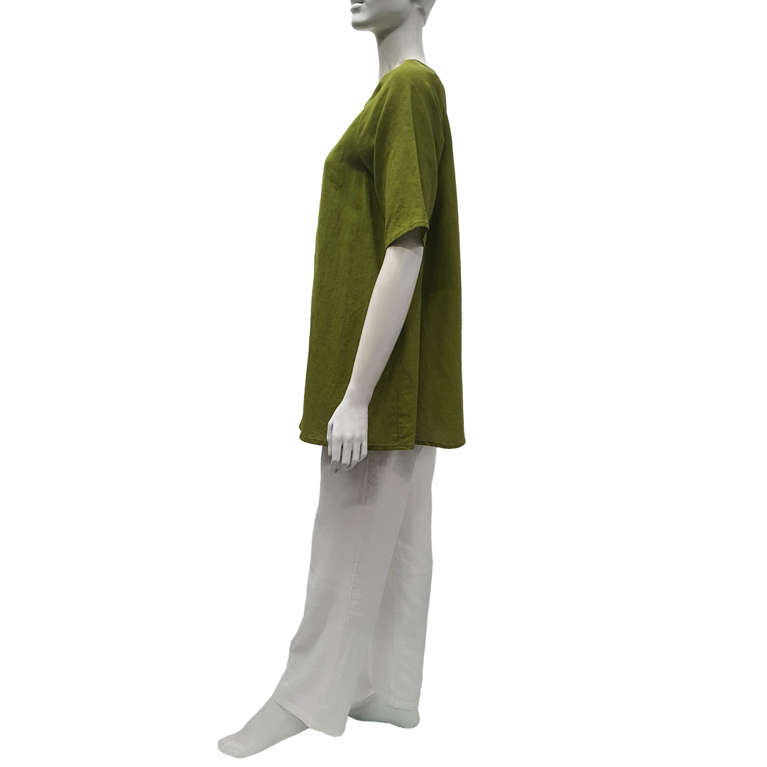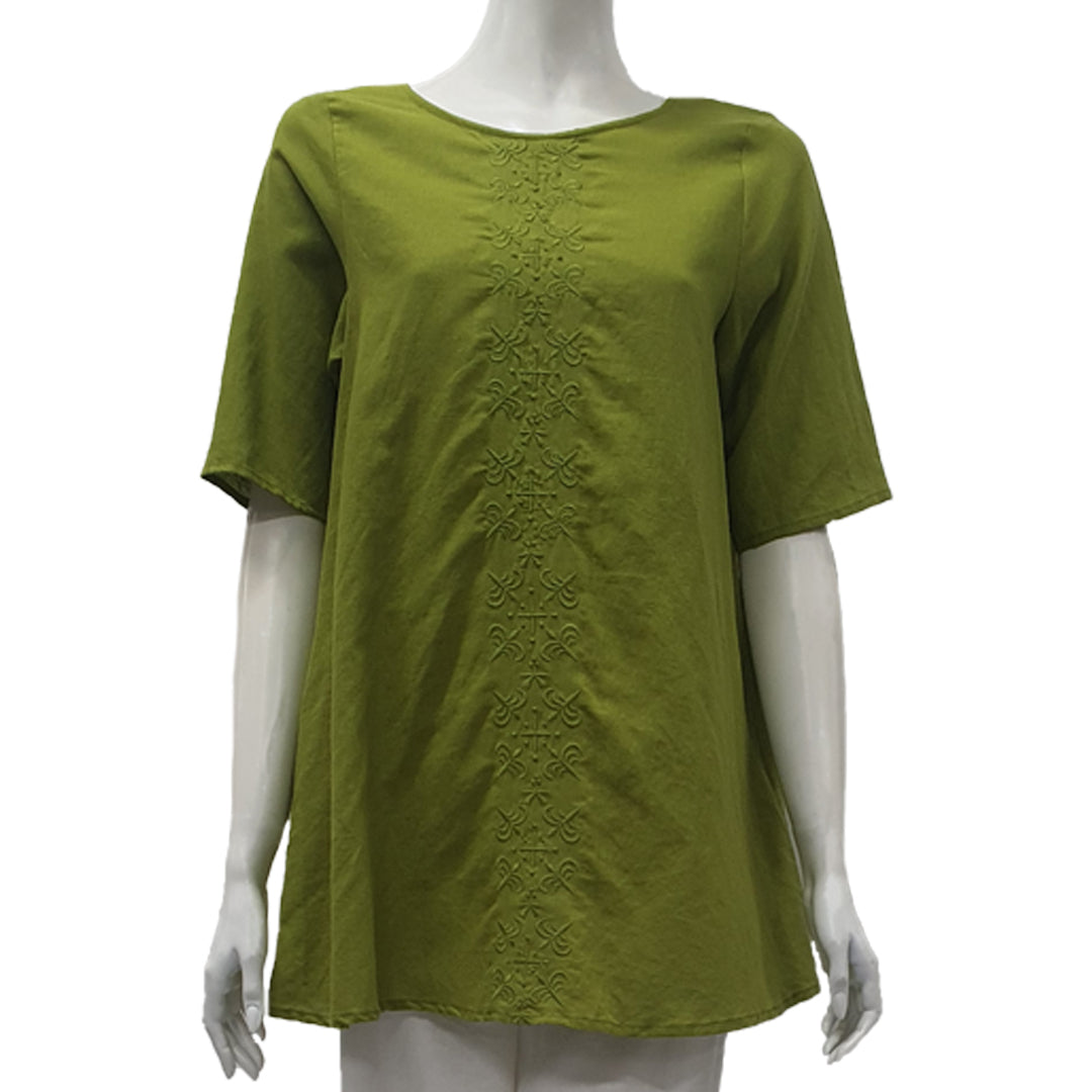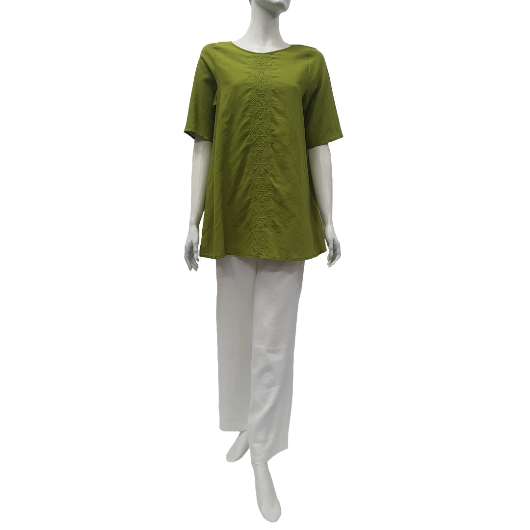 A loose-fit top featuring half sleeves and subtle embroidery detail along the front panel for a simple yet elegant look.